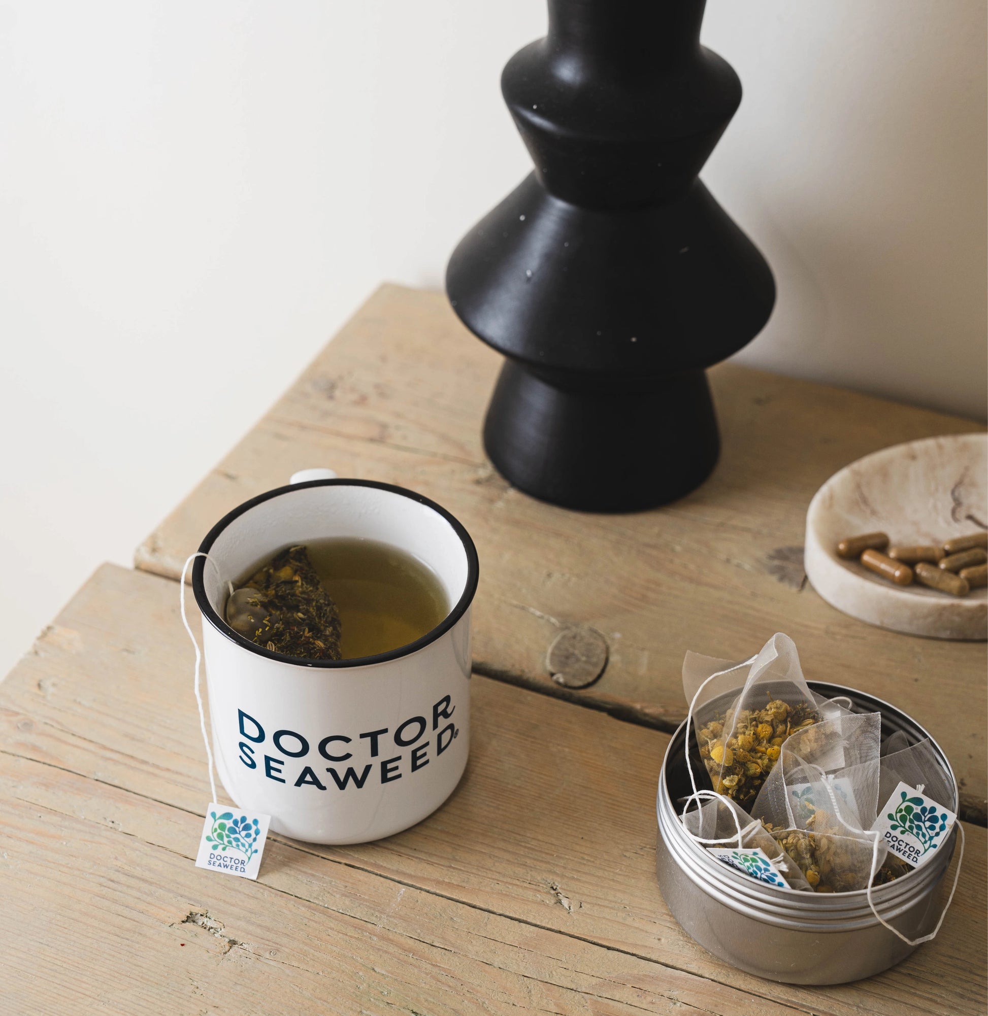 A blend of chamomile, mint, fennel seed and Scottish seaweed provides a natural, caffeine-free infusion to help you incorporate the benefits of seaweed into your daily routine. Each tin includes 15 compostable tea bags.