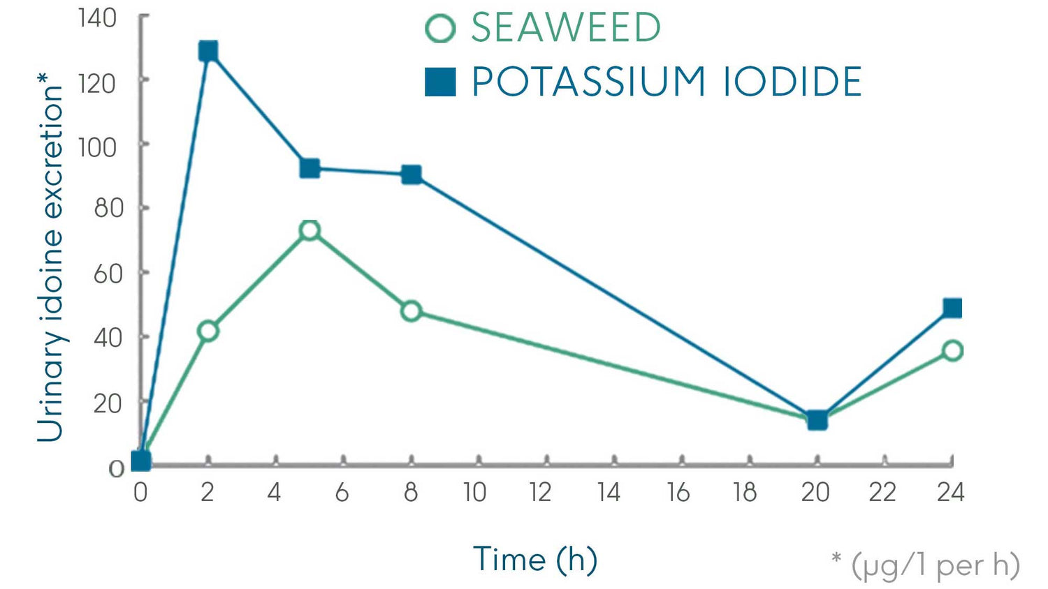 Independent research shows that our seaweed releases iodine more slowly, with longer retention in the body as compared to artificial sources (potassium iodide) often used in other supplements.